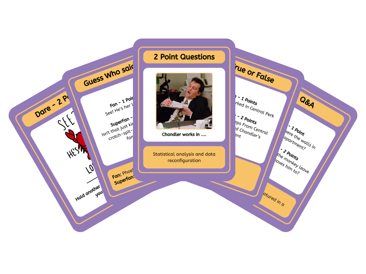 - Q&A Cards: Choose between Fan (1 point) or Superfan (2 points) questions.